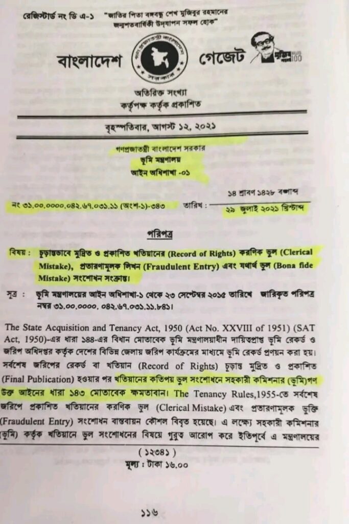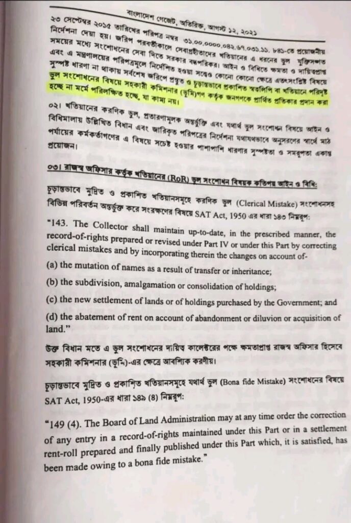 ➤রেকর্ড বা খতিয়ানের এই ভুলগুলো ৩ মাসের মধ্যে সংশোধন হলে আদালতে লক্ষ লক্ষ মামলার জট কমতো, রেকর্ড ভুলের জন্য জনগণের সীমাহীন ভোগান্তি নিরসন হতো।